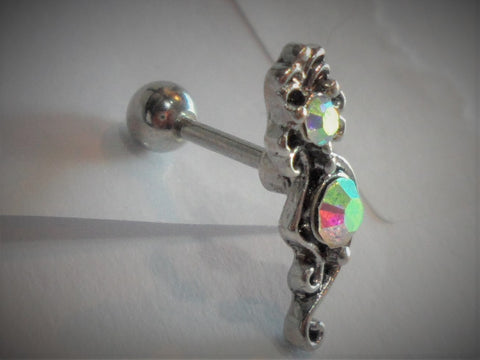 Surgical Steel Ornate Iridescent Gems CZ Crystals Swirls Cartilage Piercing 16g