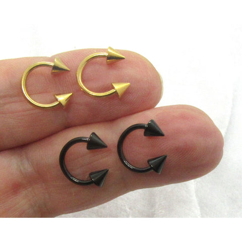 This is for a pair of gold or black spiked rings in either 16 or 14 gauge.