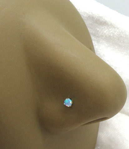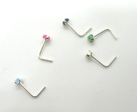 22G Opal White Pink Blue Green Nose Stud L Shape Nose Ring Jewelry Pin Earring 22 Gauge