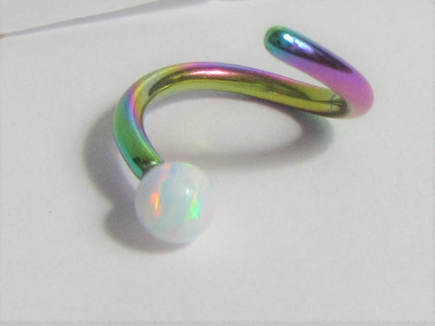 Oil Slick Titanium White Opal Solitaire Hoop Ring 16 gauge 16g 8mm Diameter