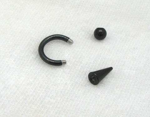 14G Black Snake Bites Labret Lip Ring Long Spike Bottom Side Lip Ring Horseshoe 14 gauge Lip Stud Lip Ring Lip Jewelry